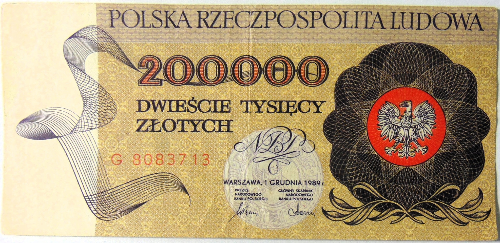 1989 200000 zł złotych Warszawa RZADKI seria G. Oryginał. SPRAWDŹ INNE AUKCJE - KOLEKCJONUJ RZADKIE WALORY Z NUMIZMATO!