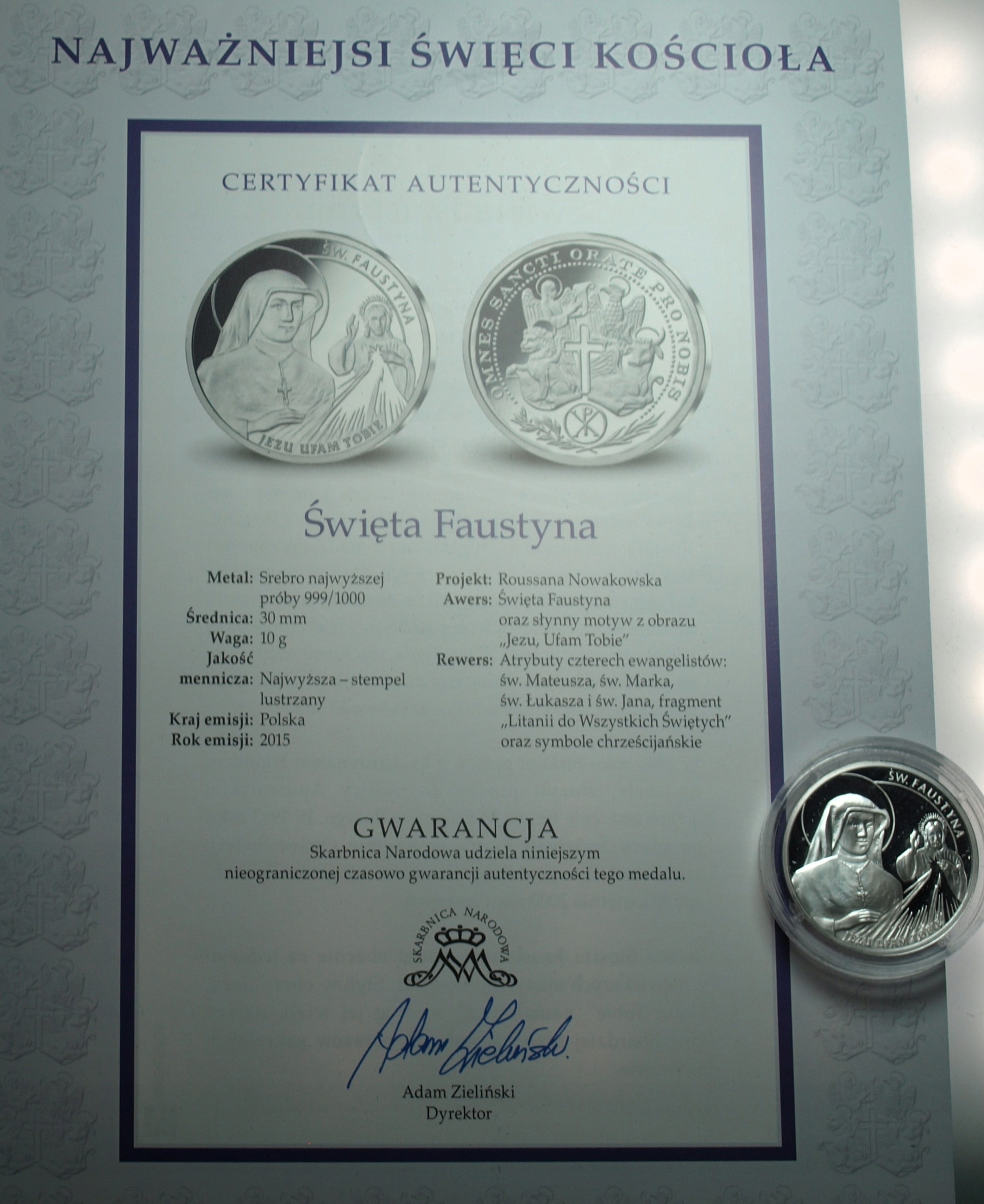 Święta Faustyna 2015 Najważniejsi Święci Kościoła SREBRO. Oryginał. SPRAWDŹ INNE AUKCJE - KOLEKCJONUJ RZADKIE WALORY Z NUMIZMATO!