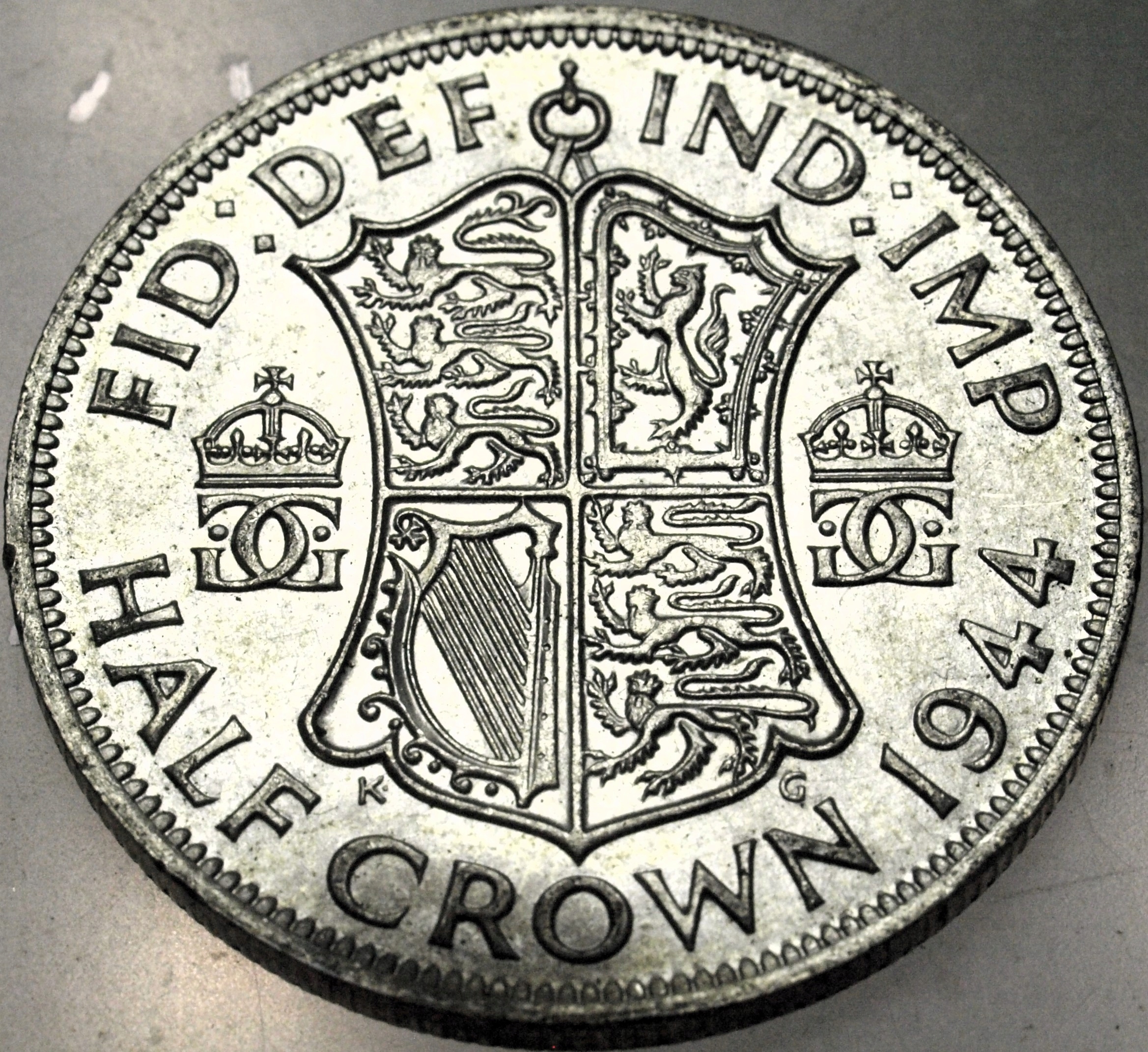Anglia UK pół korony half crown 1944 Jerzy VI George SREBRO. Oryginał. SPRAWDŹ INNE AUKCJE - KOLEKCJONUJ RZADKIE WALORY Z NUMIZMATO!