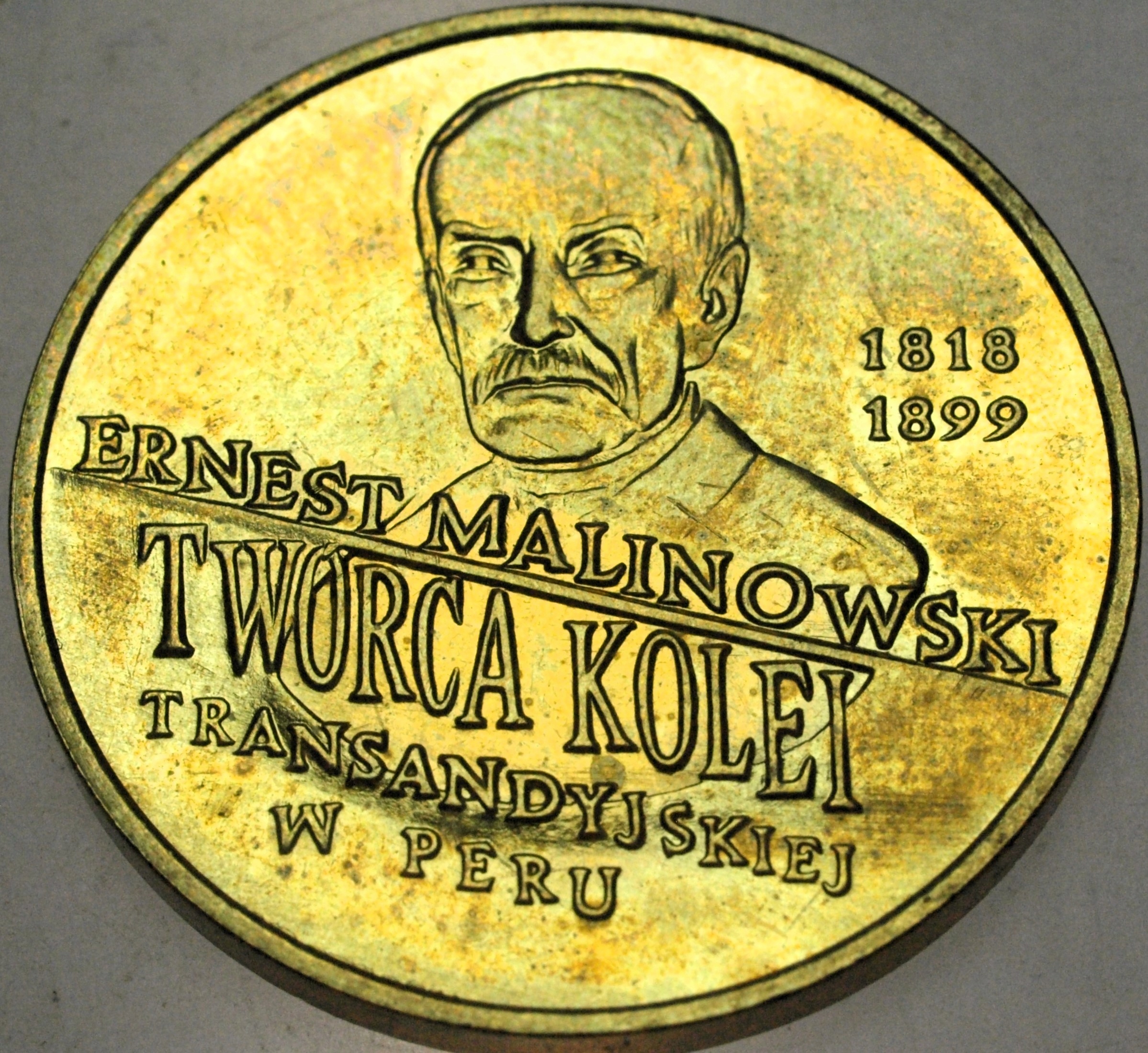 2 zł złote 1999 Ernest Malinowski Peru. Oryginał. SPRAWDŹ INNE AUKCJE - KOLEKCJONUJ RZADKIE WALORY Z NUMIZMATO!